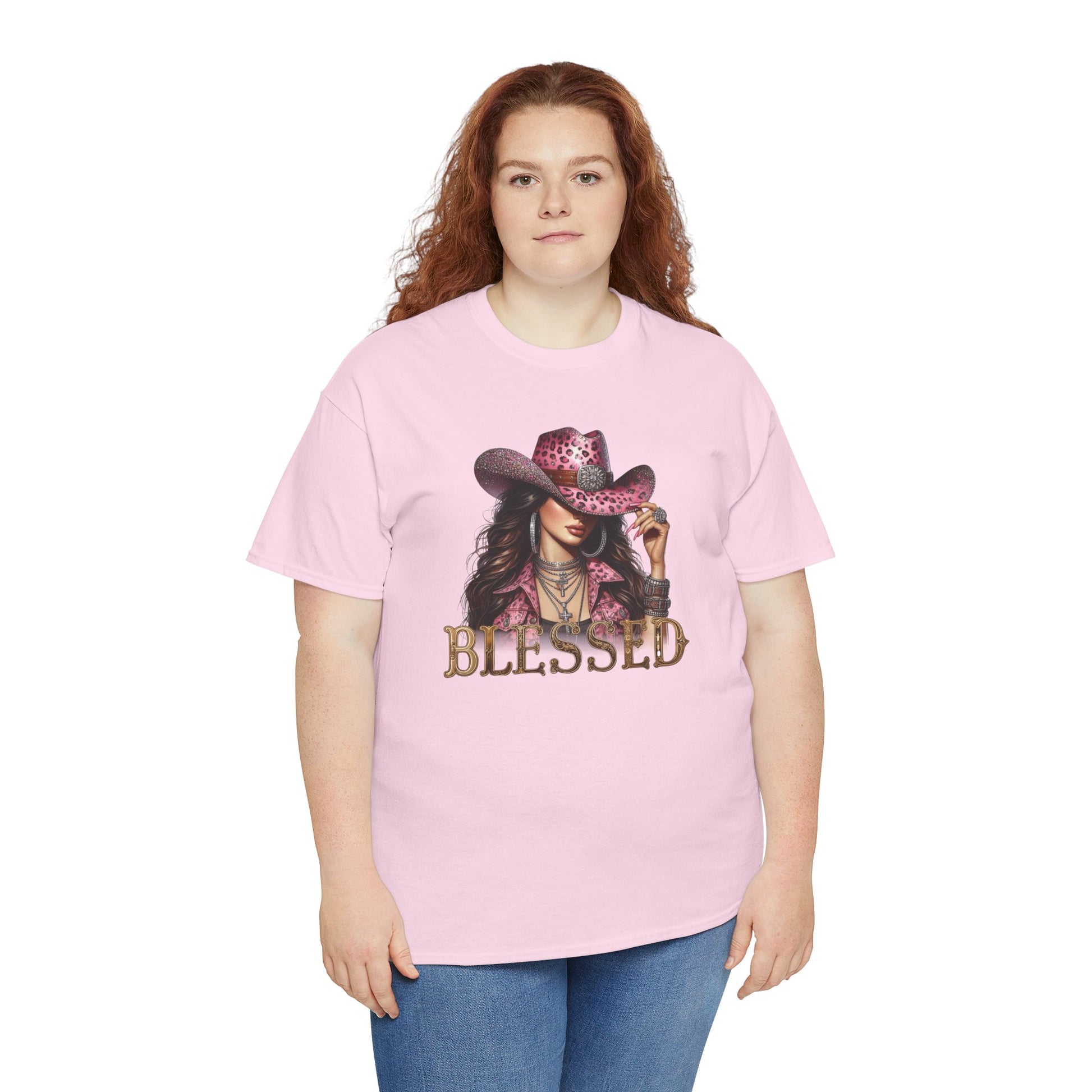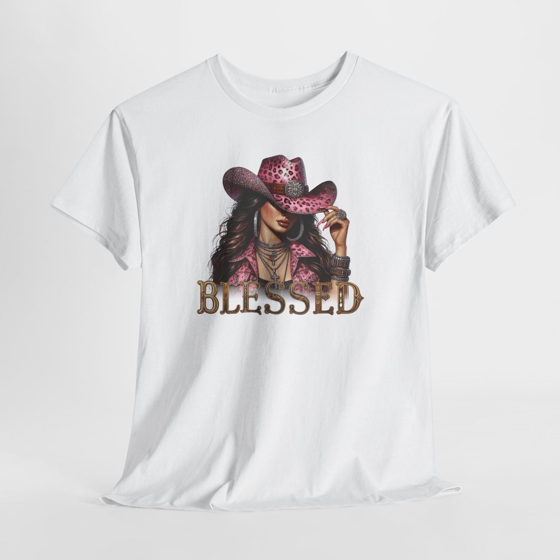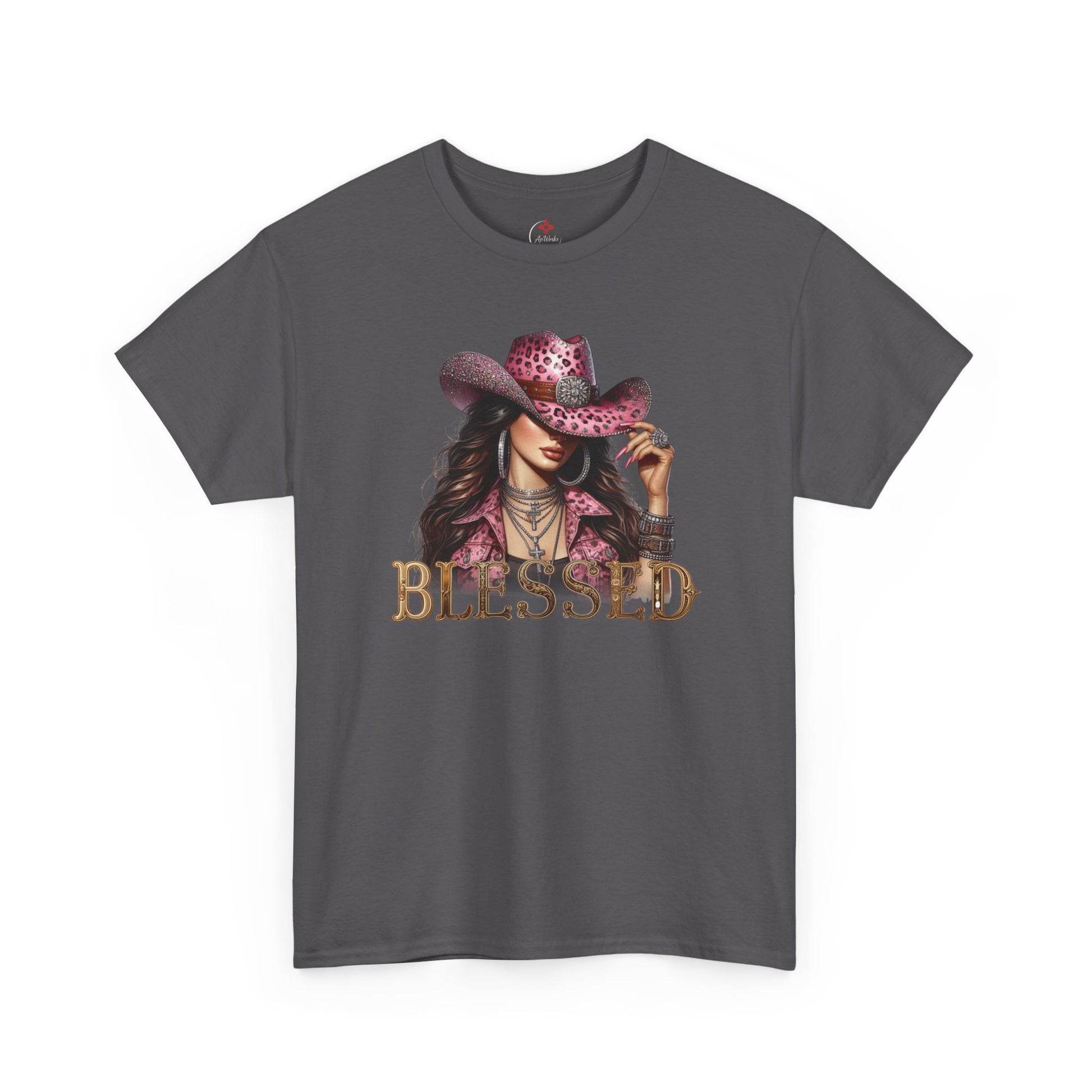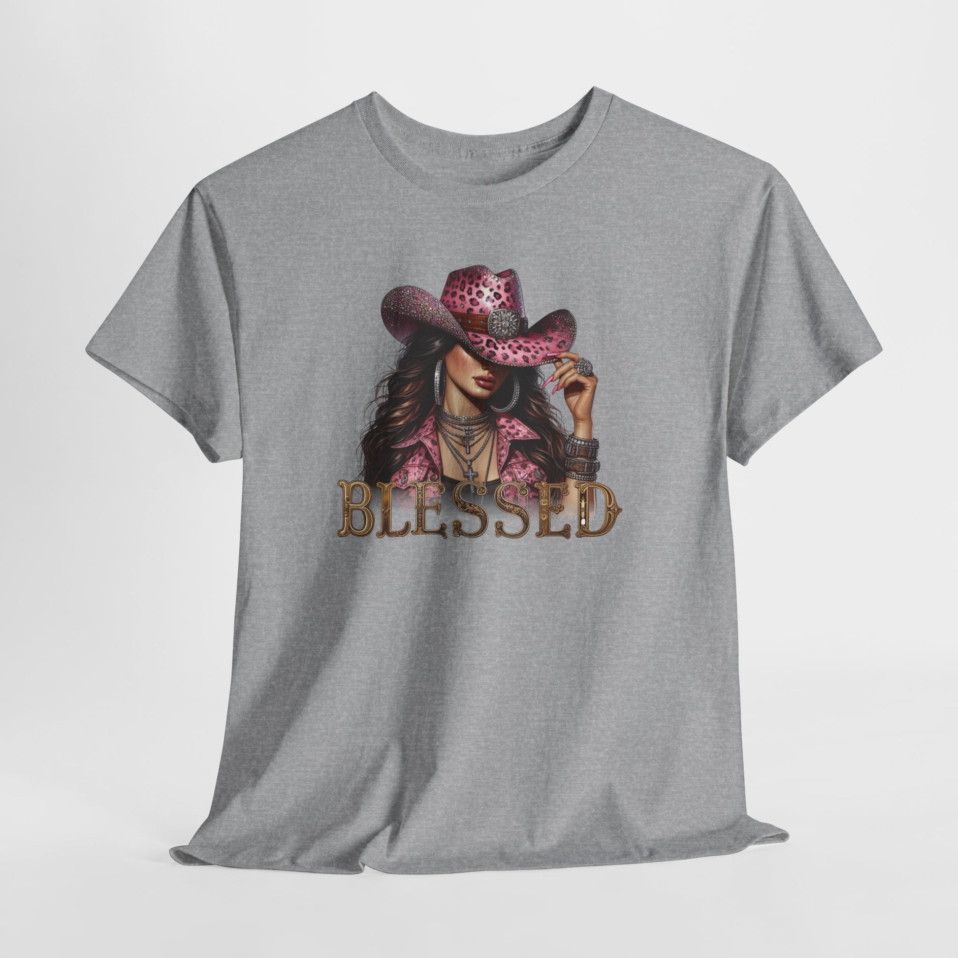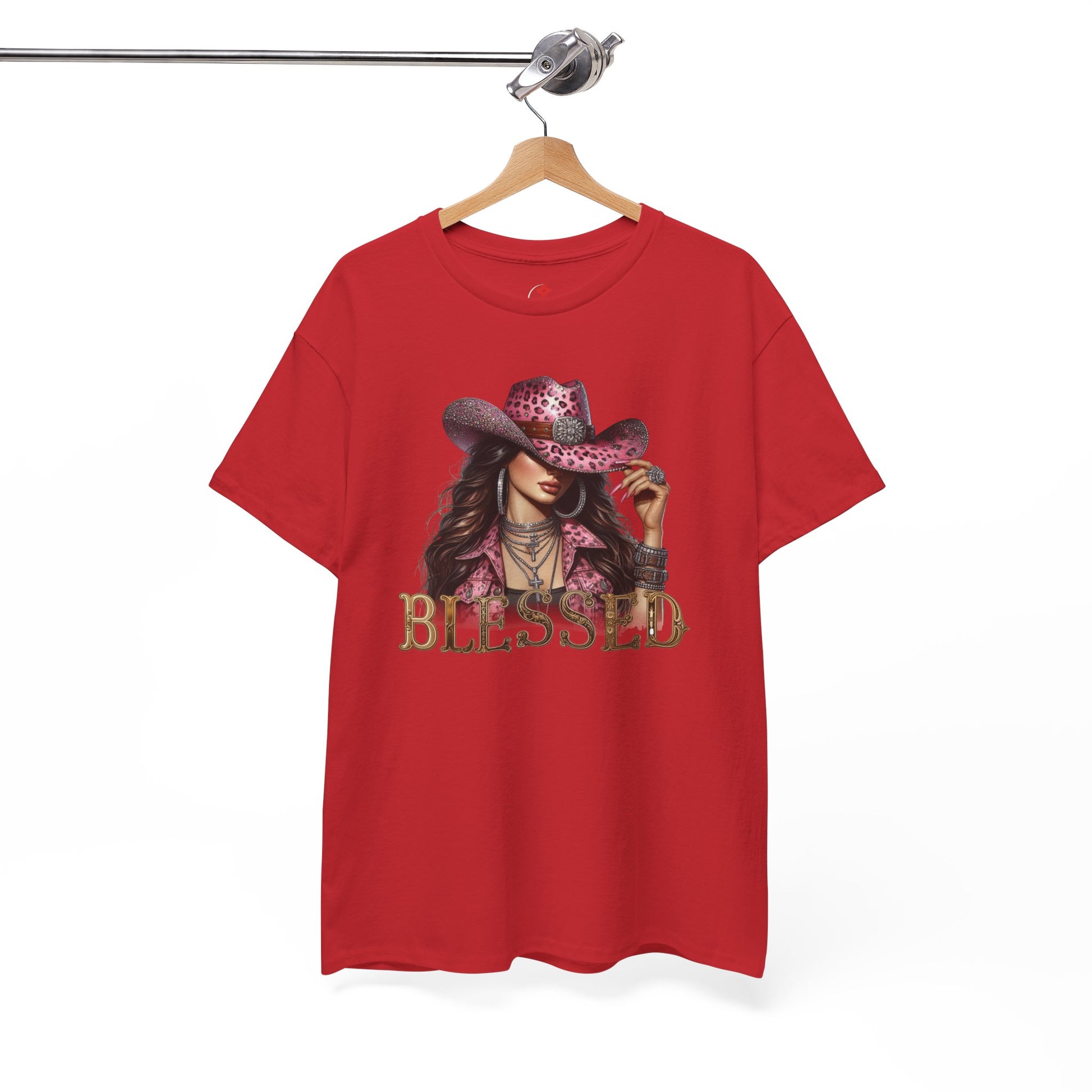 This “Blessed” shirt features a stunning Western cowgirl in a pink leopard hat and glam jewelry — the perfect blend of southern sass and spiritual confidence. Designed for the modern cowgirl who knows her worth and walks in gratitude, this tee makes a statement wherever you go.