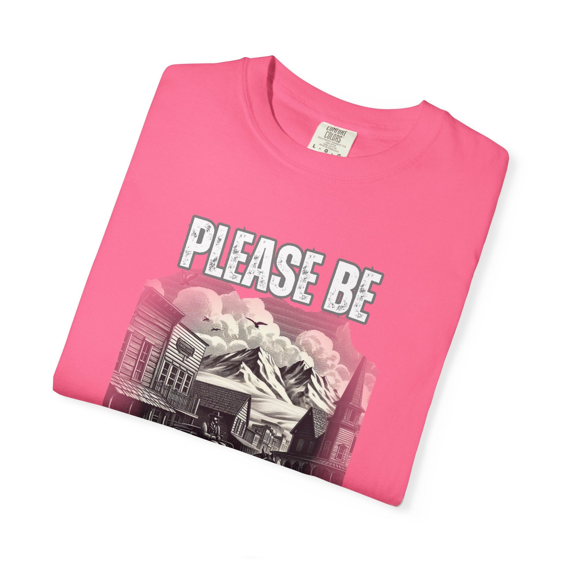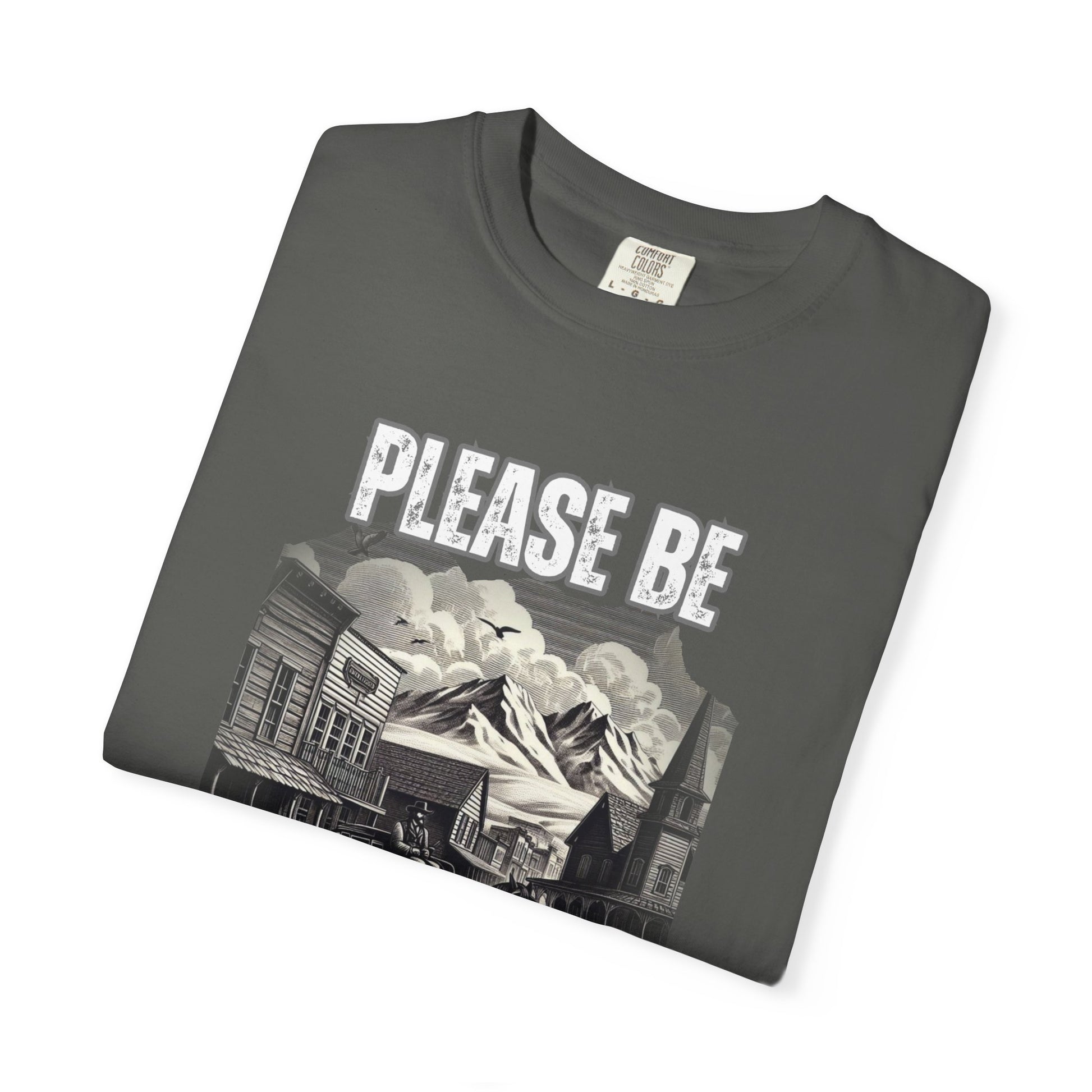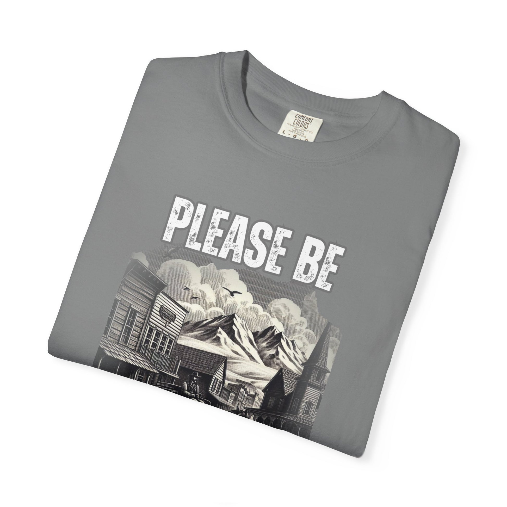 This “Please Be Patient With Me I’m From The 1900’s” t-shirt combines old-west nostalgia with modern humor. Featuring a vintage-style print of a horse-drawn carriage rolling through a classic frontier town, it’s the perfect mix of rustic charm and witty self-awareness.