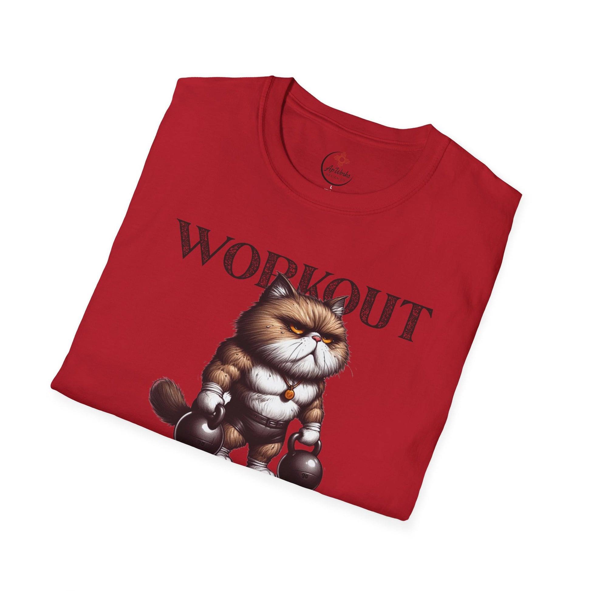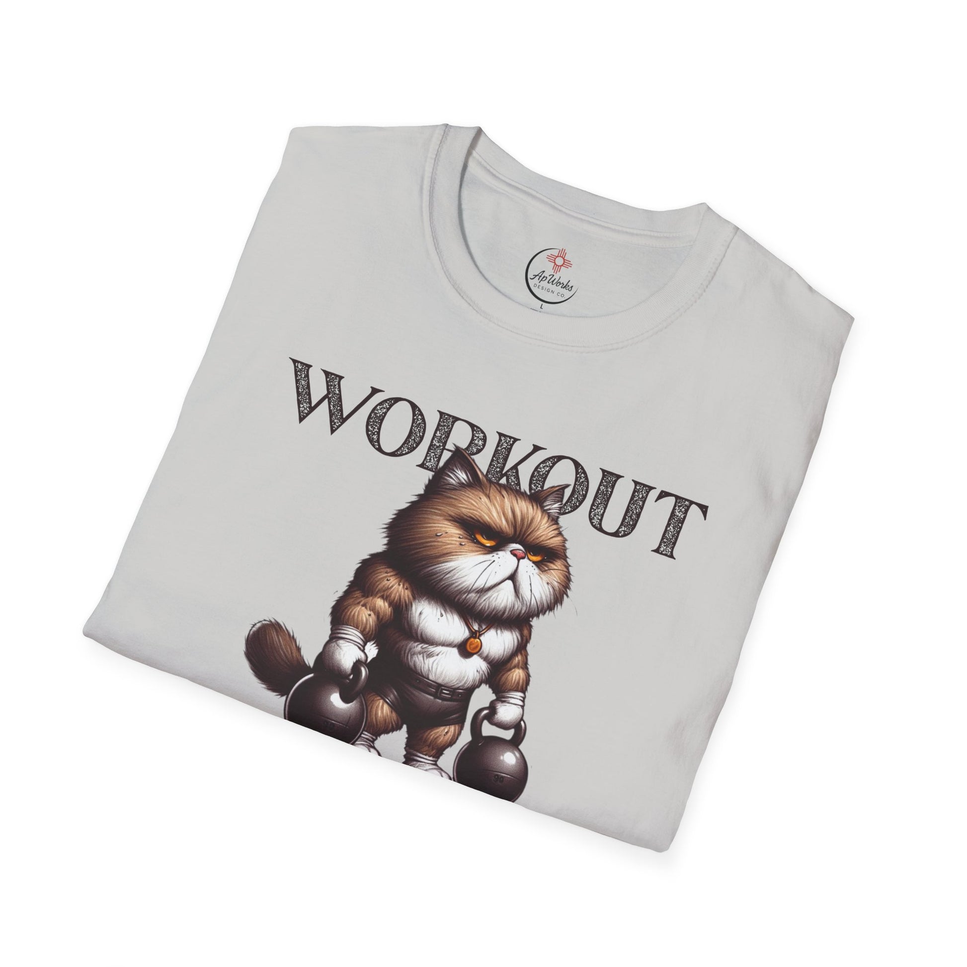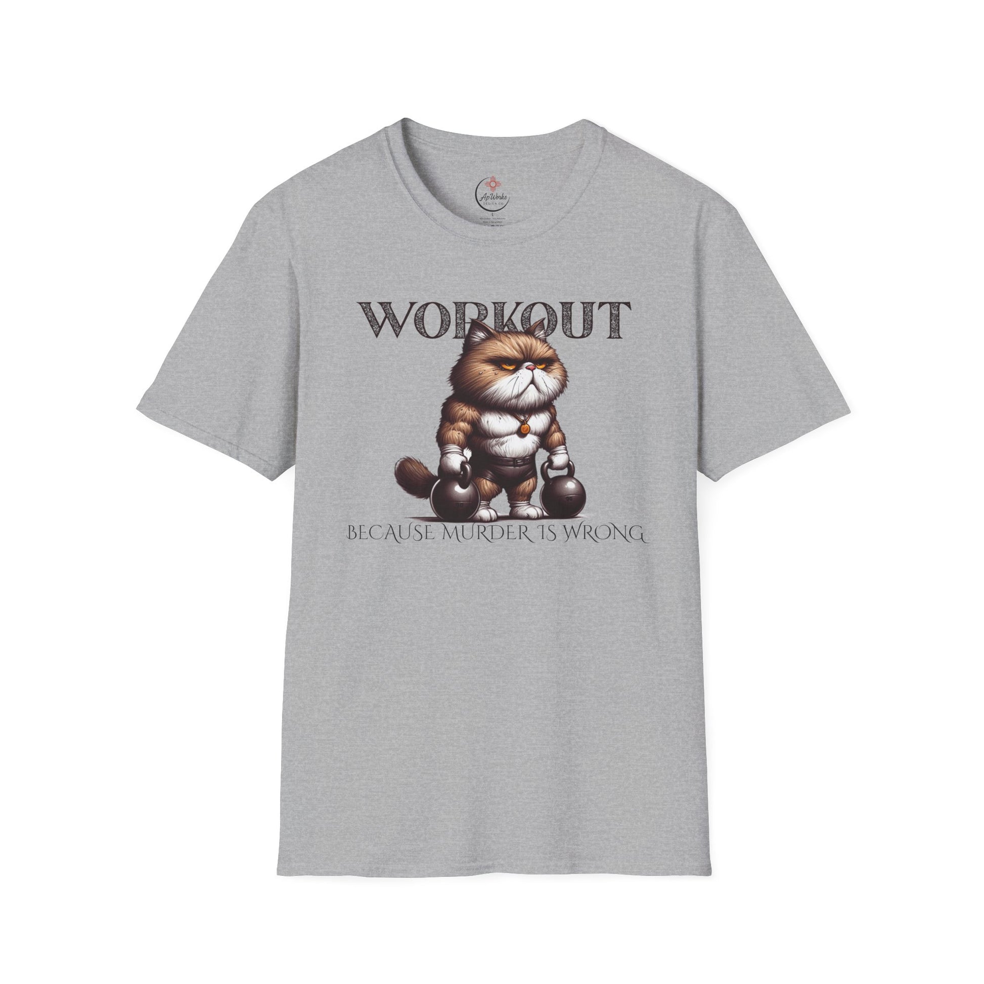 This hilarious workout tee features a tough, muscular cat holding kettlebells with the bold phrase “Workout Because Murder Is Wrong.” Perfect for gym rats, cat lovers, or anyone who takes their gains (and their humor) seriously.